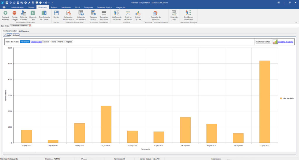 Financeiro completo com fluxo de caixa, contas a receber e a pagar.